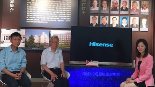 7月8日,海信在北京正式发布了全球首台观星级叠屏电视U9E。 图片说明:欧阳钟灿院士(中)接受人民视频采访。 “海信叠屏电视的上市是一个足可以让中...