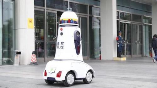 国庆节马上到了,在北京西单商业区,一台机器人“警察”出现在来往的人群中“上岗执勤”,吸引了众多市民驻足。图为9月27日,正在北京西单商业区“执勤...
