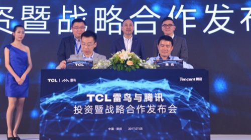 继7月3日TCL公告旗下互联网品牌雷鸟与腾讯签订股权合作合同,7月5日下午,“TCL雷鸟与腾讯投资暨战略合作发布会”在深圳召开。会上,双方共同宣...