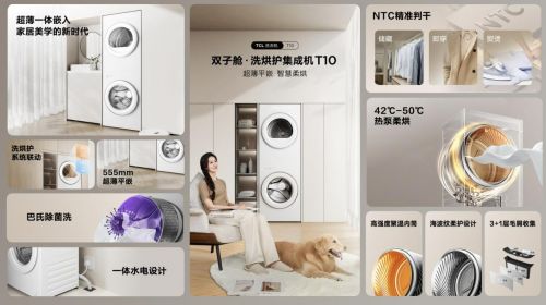前沿科技,助力品质生活 如今TCL推出双子舱T10洗衣机,以一体式设计的洗烘护集成机方案,解决传统洗衣机长期困扰消费者的“功能单一、衣物清洗不干...