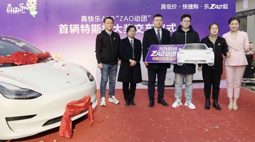 1月19日,真快乐APP“ZAO动团”活动首辆特斯拉大奖交车仪式在河南洛阳隆重举行。交车仪式现场,获奖人楚先生在家人和工作人员的簇拥下,接过特斯...