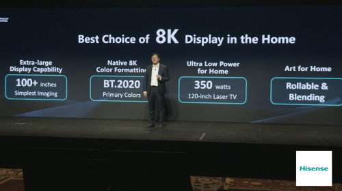 “很多人对8K电视的使用意义有误区,实际上电视尺寸越大,8K跟4K的画面像素密度单位差距就越大,分辨率的提升是为了在更大尺寸画面下保持同样的清晰...