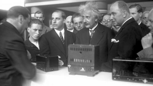 第一张图为1930年爱因斯坦在IFA展会现场。这位世界最著名的物理学家在第七届德国广播和留声机大展上发表了开幕词,在会上,“电视接收机”的第一个演...